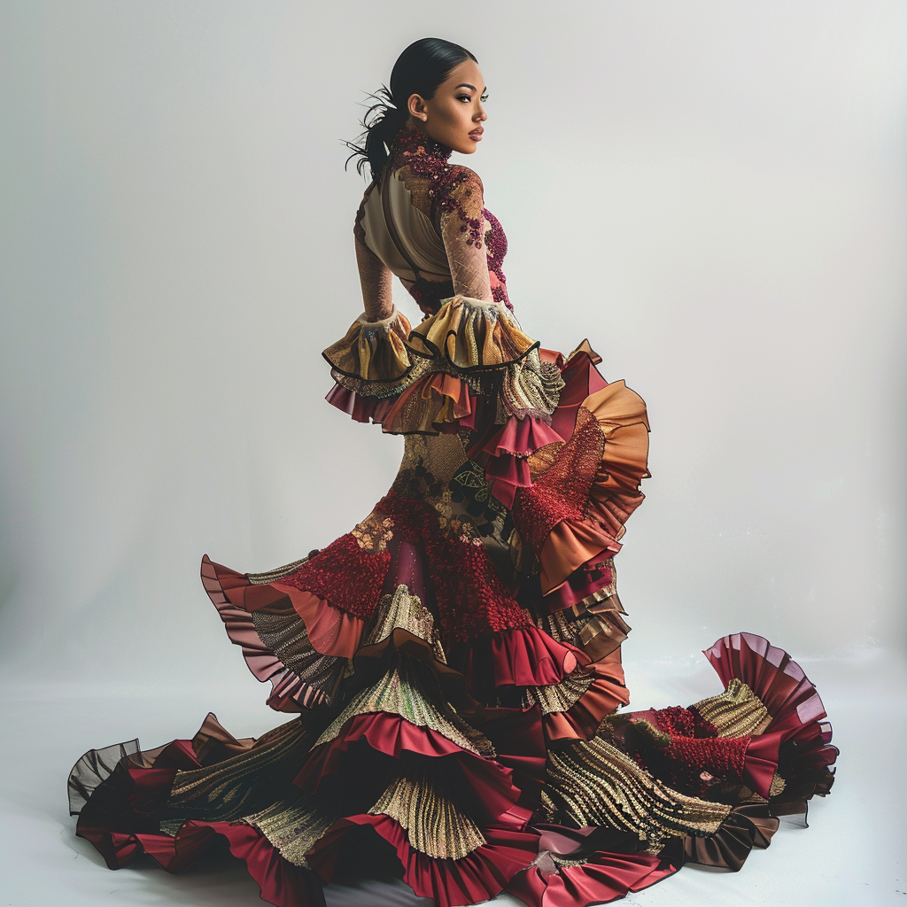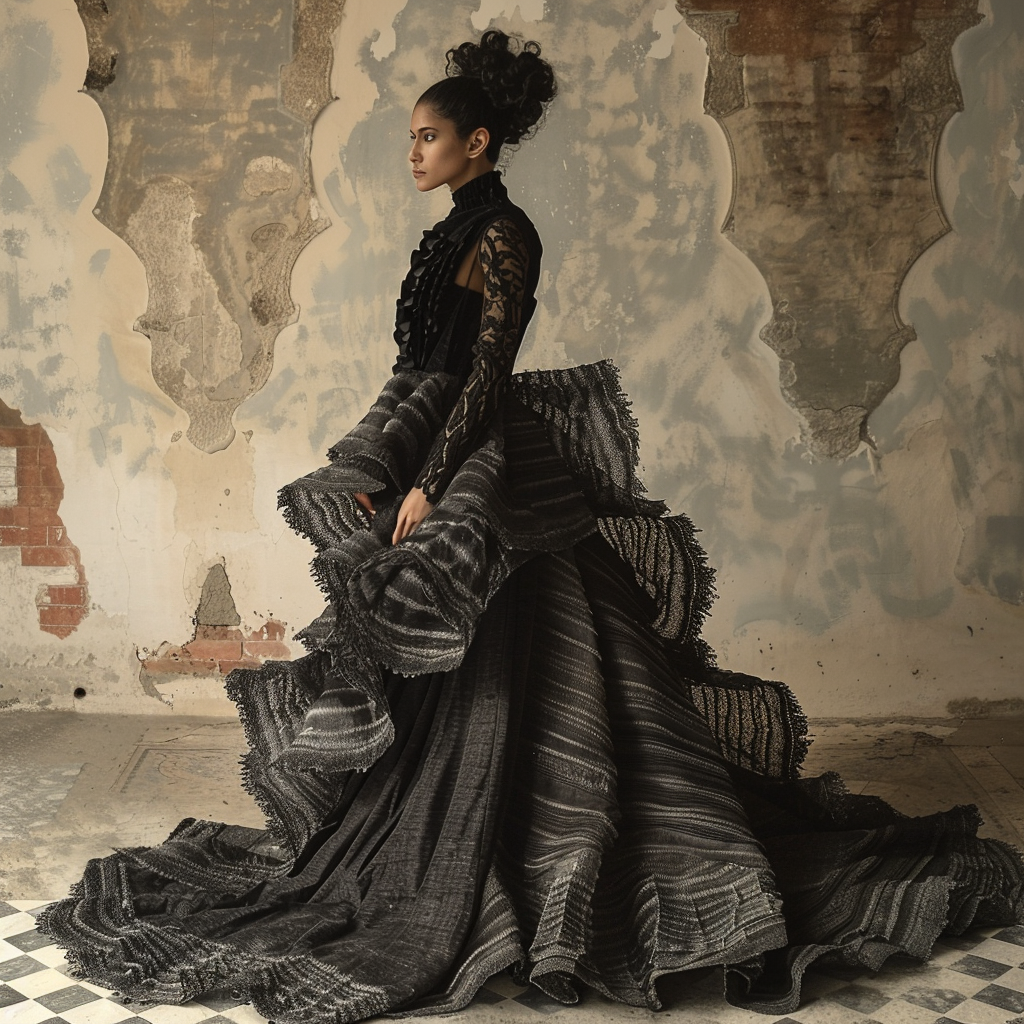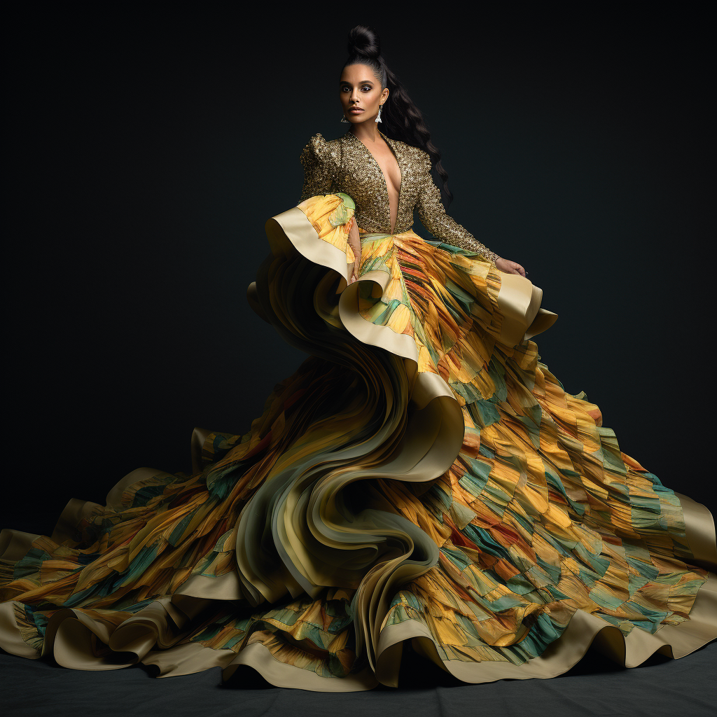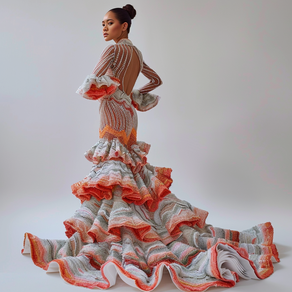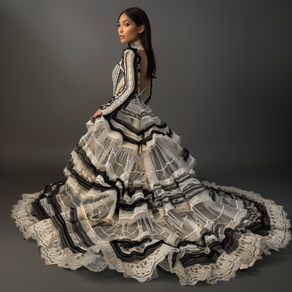 Los Andes ecuatorianos son conocidos por su rica tradición textil. Los diseñadores han tomado elementos de esta herencia, incorporando tejidos hechos a mano, bordados intrincados y una gama de colores vibrantes que reflejan los paisajes montañosos y la vida rural andina. Los vestidos de esta colección son una fusión de modernidad y tradición, mostrando patrones geométricos y simbología indígena.